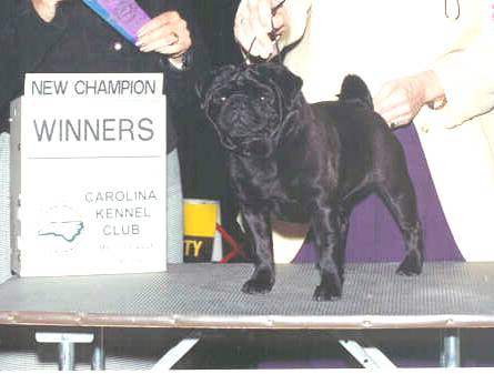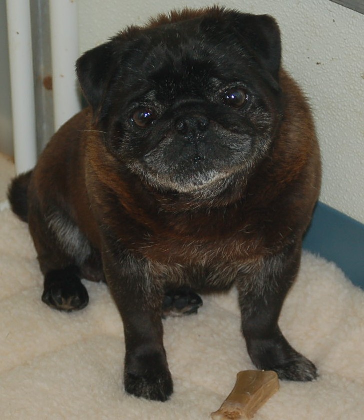 Casper was bred by Debbie and Ronnie Doan of ShorLine Pugs. He is a delightful little guy and produces absolutely lovely puppies. He is very very short and cobby with a huge head and tons of bone and you will see this in his puppies. He also has a charming temperament. He carries a fawn gene and therefore throws both fawns and blacks.